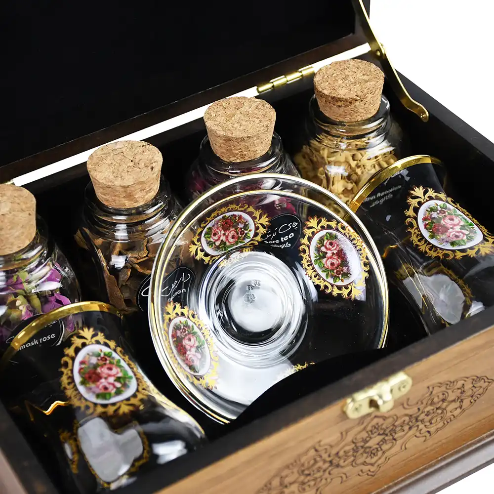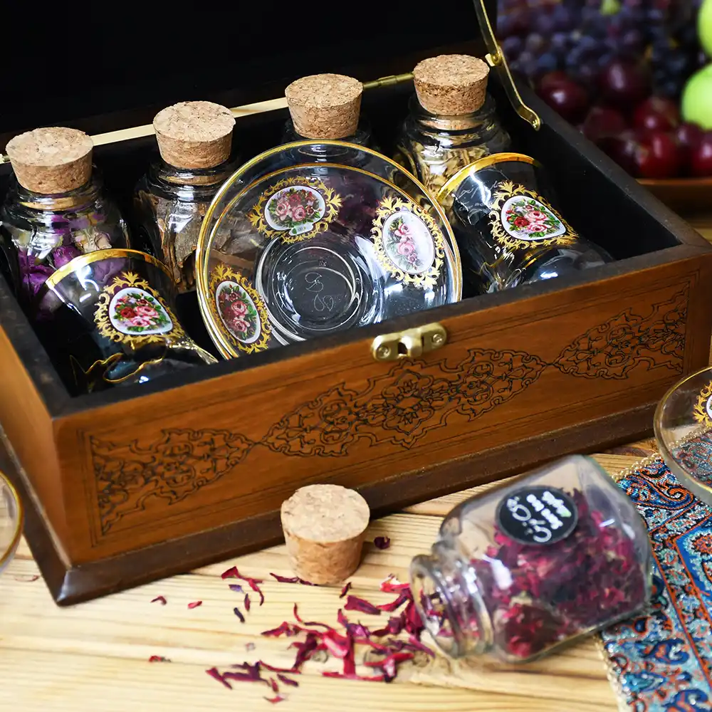 - شامل 4 عدد دمنوش و طعم دهنده گیاهی و دو عدد استکان و نعلبکی