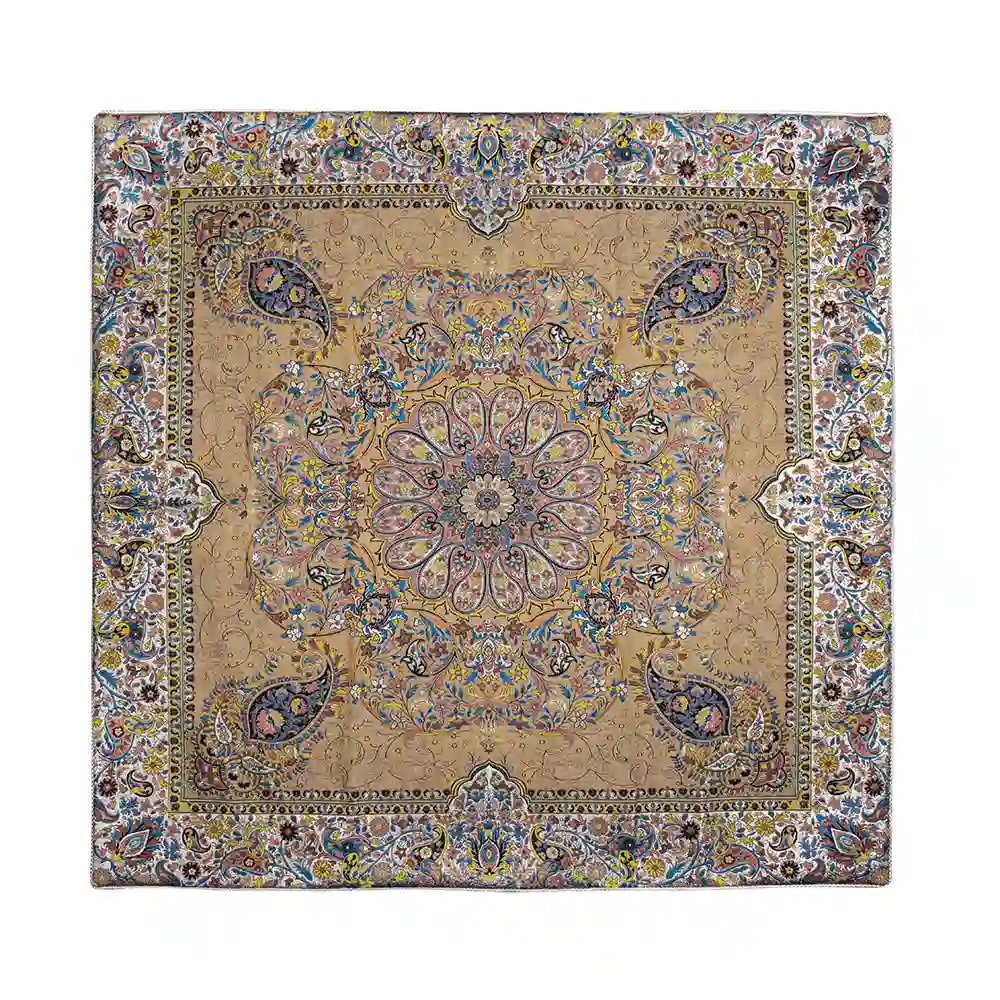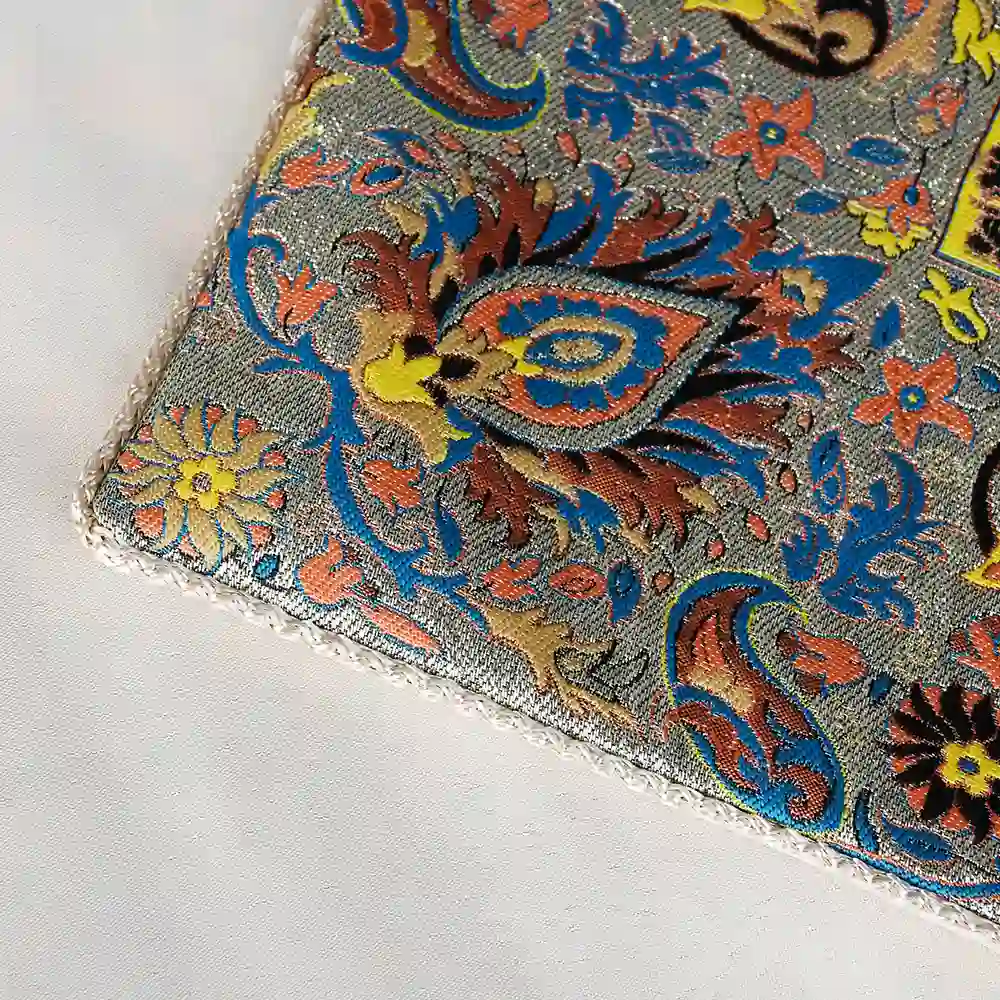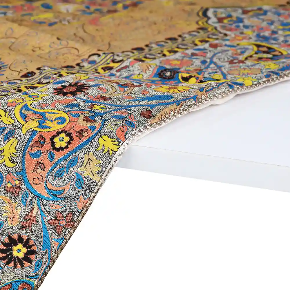 ترمه هفت رنگ همادیس مدل افشار کد TR05 یکی از زیباترین و اصیلترین نمونههای هنر نساجی ایرانی است که جلوهای باشکوه از فرهنگ و اصالت را به نمایش میگذارد. این ترمه با ابعاد 90*90 سانتیمتر، مناسب برای تزئین میزهای پذیرایی، جلو مبلی، یا حتی استفاده به عنوان قاب دیواری است. زمینه کرم رنگ درخشان آن در ترکیب با نقشهای پیچیده و رنگارنگ گلوبوته، بتهجقه و نقوش اسلیمی، حس گرما و شکوه را به فضا میبخشد.