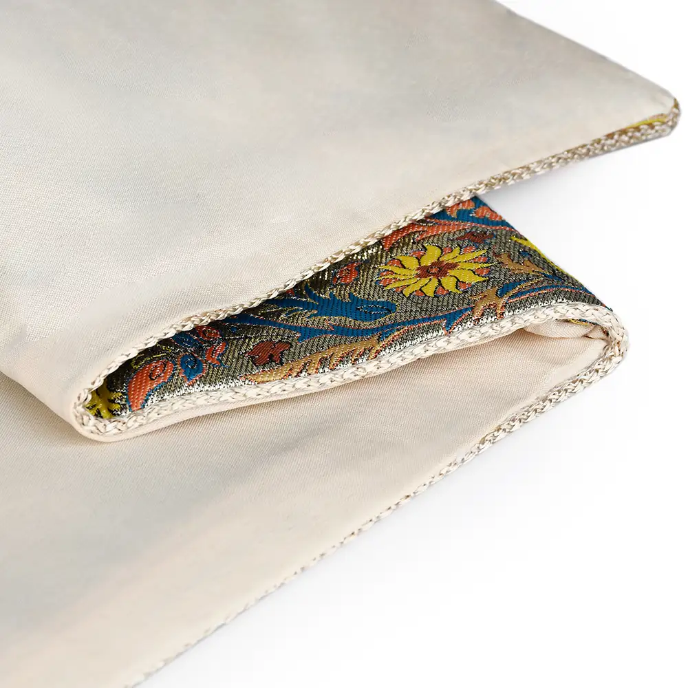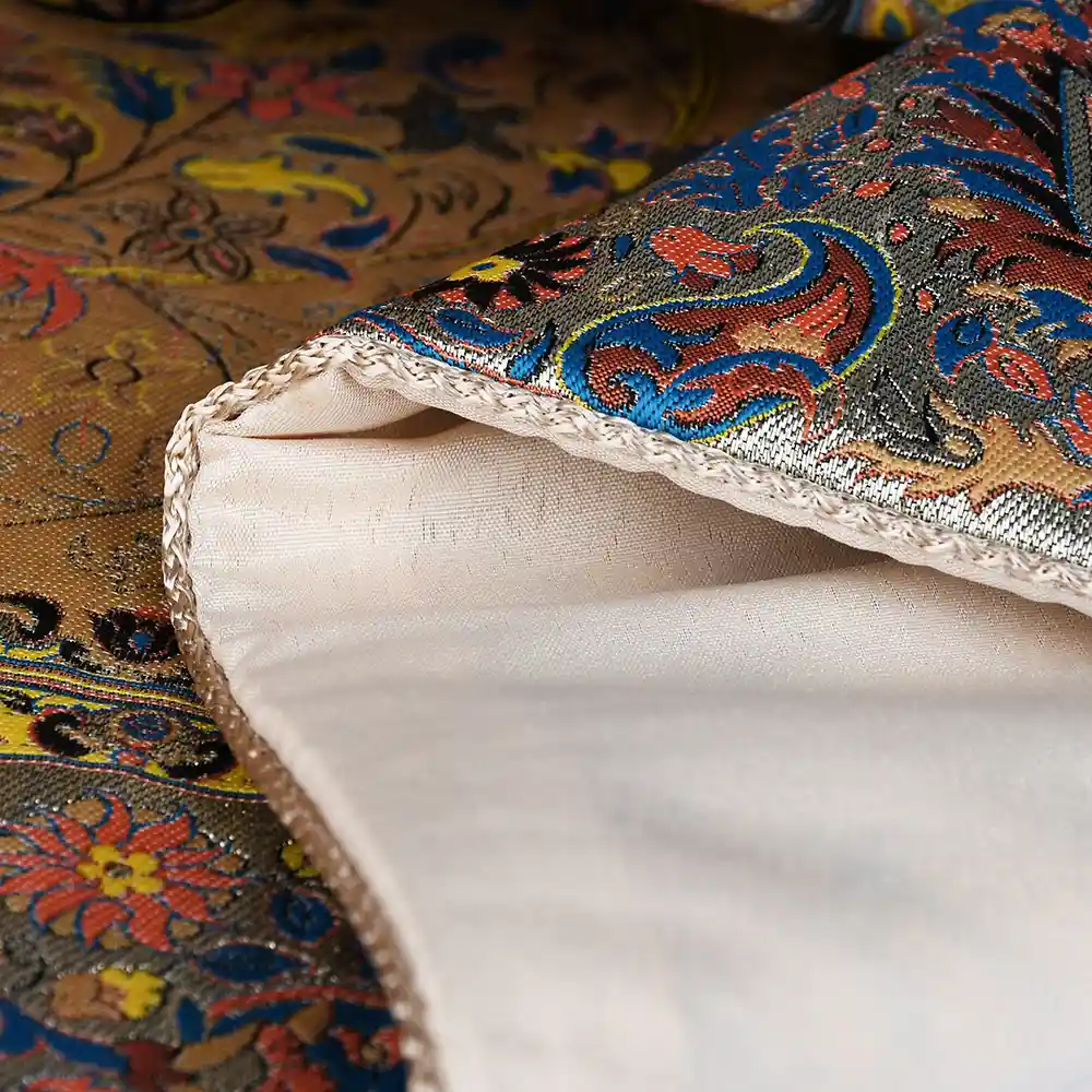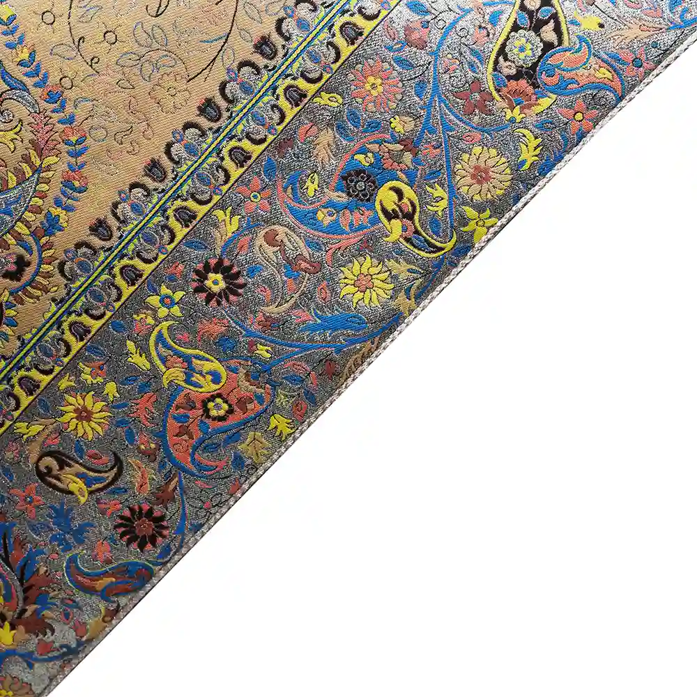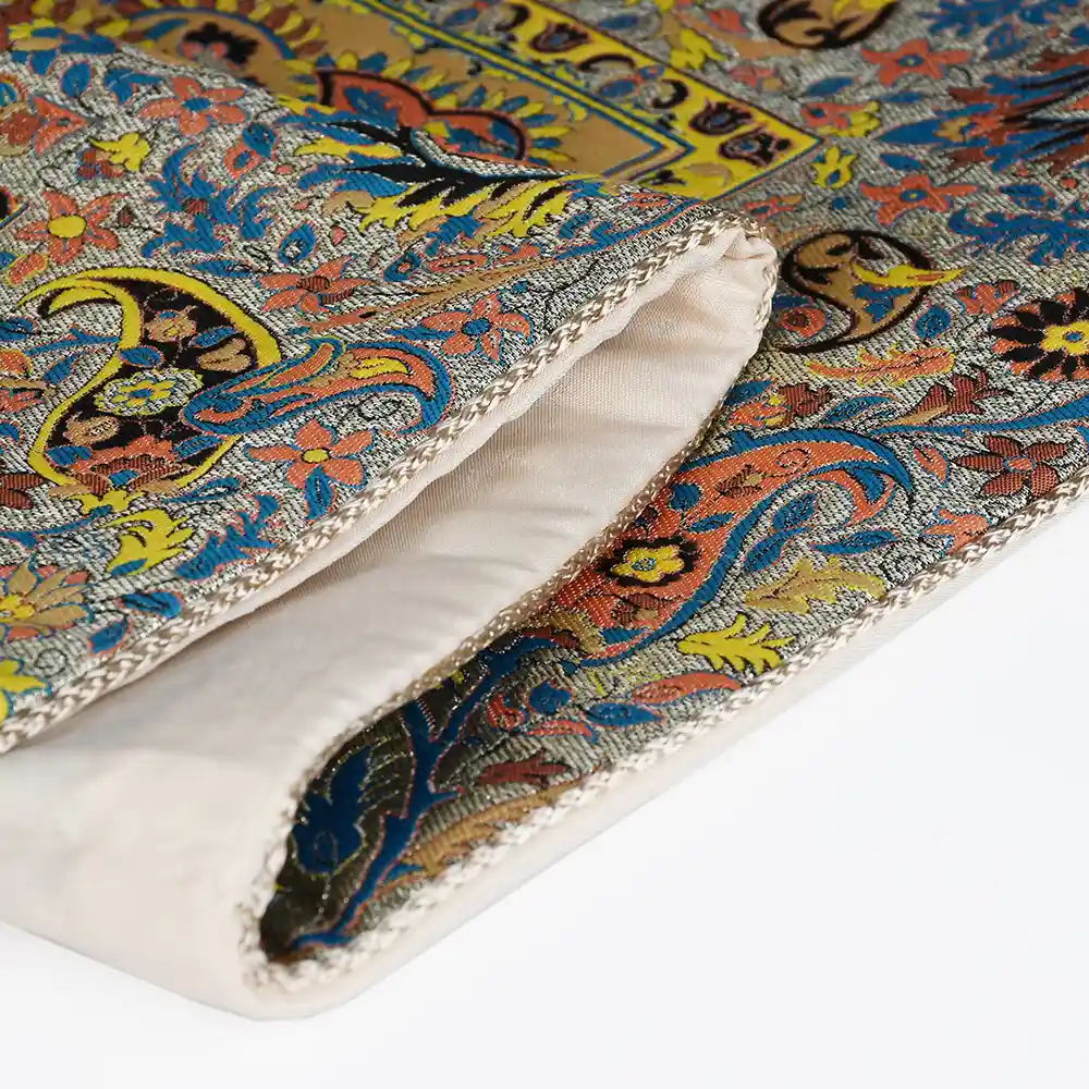 ترمه هفت رنگ همادیس مدل افشار کد TR05 یکی از زیباترین و اصیلترین نمونههای هنر نساجی ایرانی است که جلوهای باشکوه از فرهنگ و اصالت را به نمایش میگذارد. این ترمه با ابعاد 90*90 سانتیمتر، مناسب برای تزئین میزهای پذیرایی، جلو مبلی، یا حتی استفاده به عنوان قاب دیواری است. زمینه کرم رنگ درخشان آن در ترکیب با نقشهای پیچیده و رنگارنگ گلوبوته، بتهجقه و نقوش اسلیمی، حس گرما و شکوه را به فضا میبخشد.