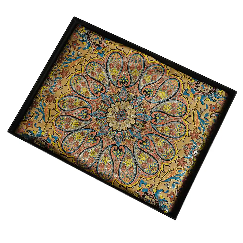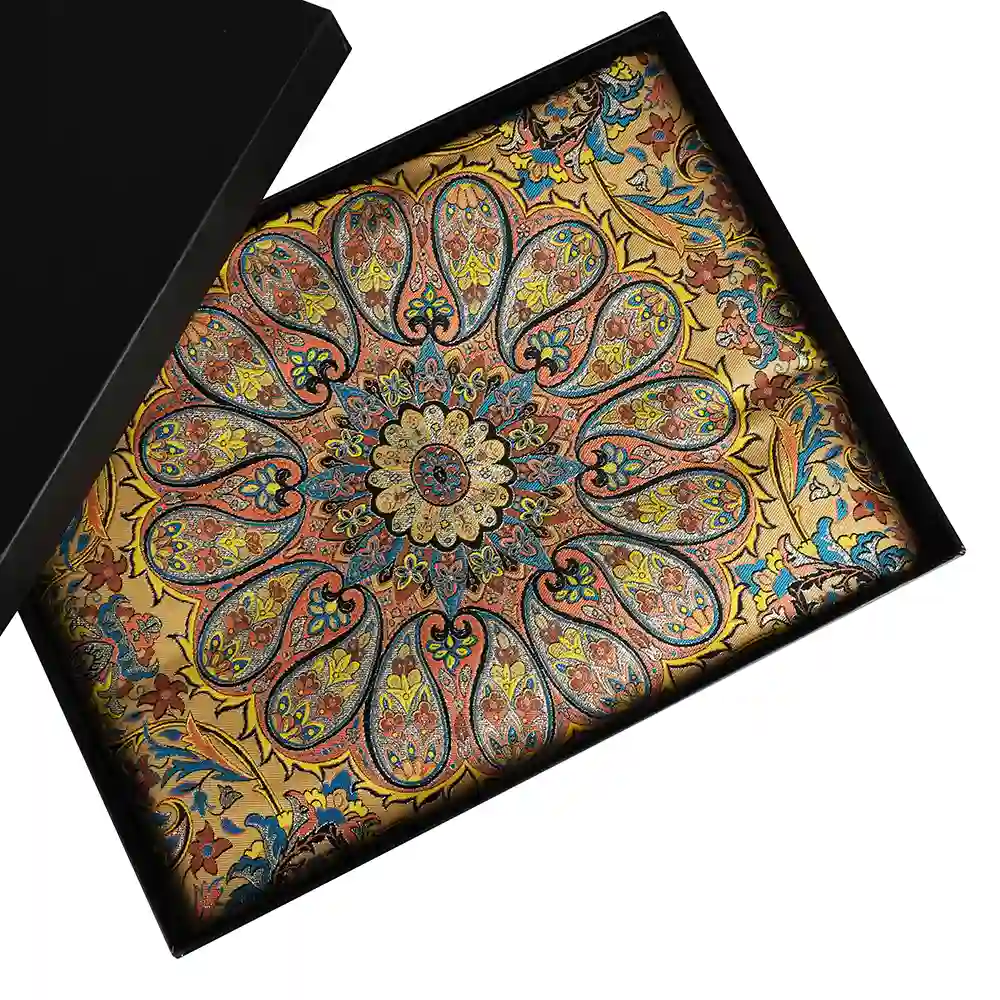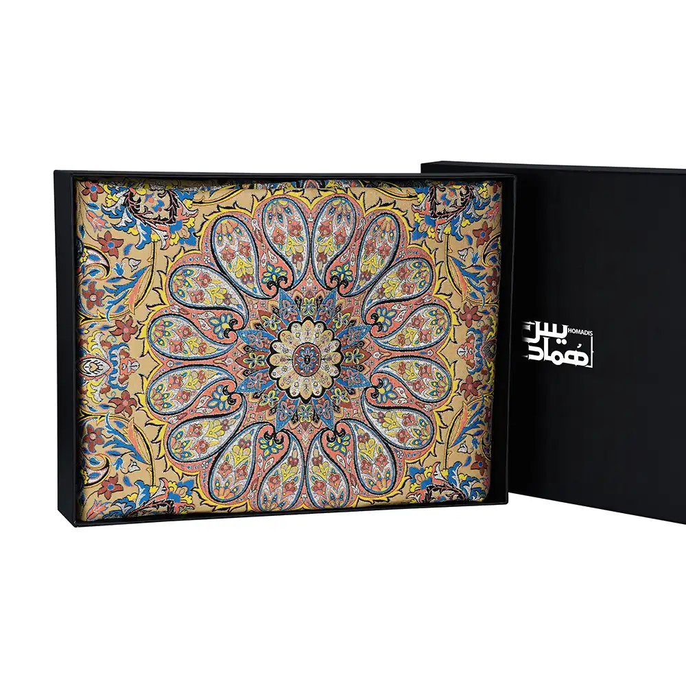 این محصول در یک جعبه هاردباکس مشکی و شیک ارائه میشود که آن را به گزینهای مناسب برای هدیهدادن در مناسبتهای خاص، بهویژه برای مدیران، زوجهای جوان یا علاقهمندان به هنر ایرانی تبدیل کرده است. ترمه همادیس، ترکیبی از هنر، اصالت و ظرافت را به خانه شما میآورد.