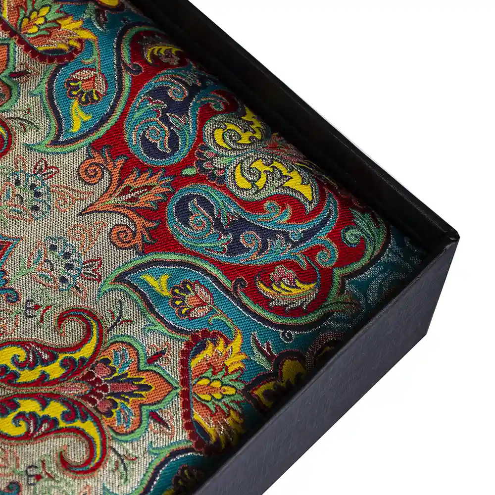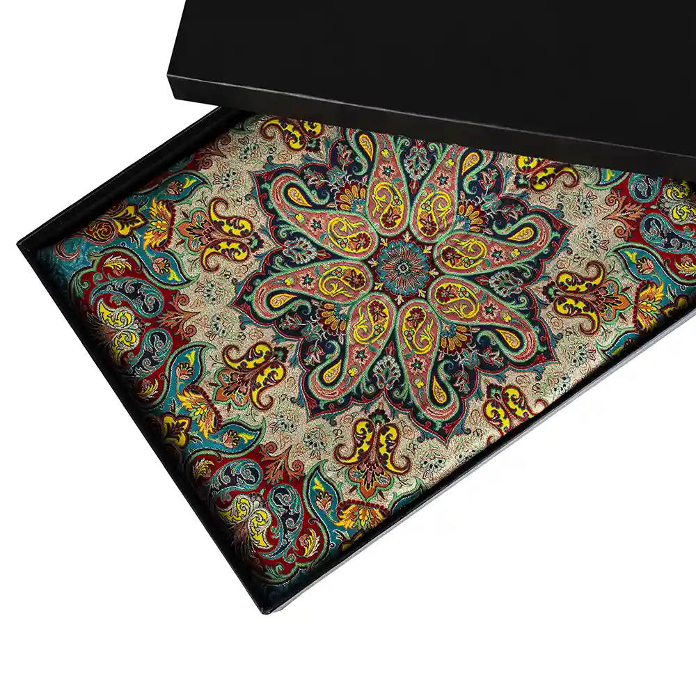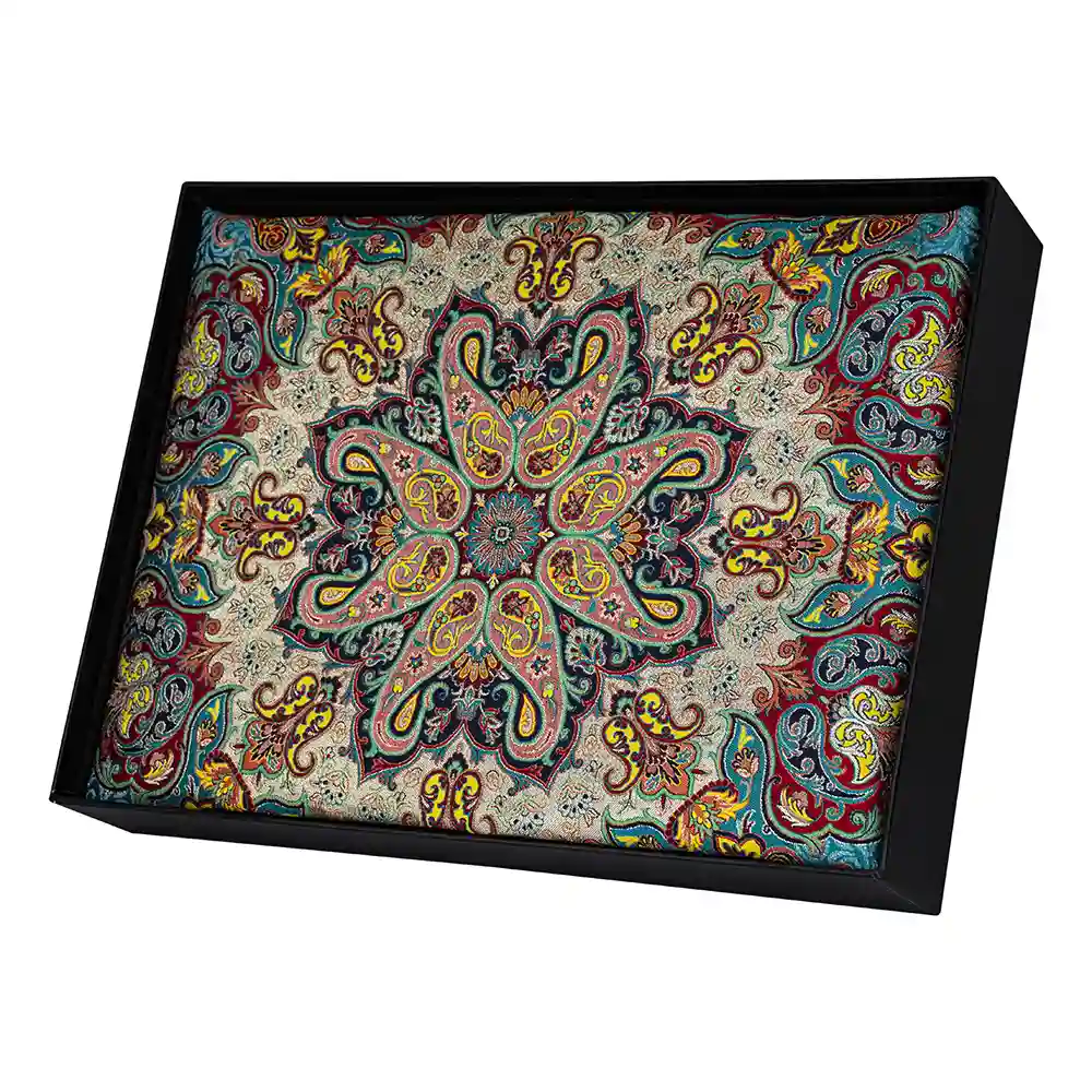 این محصول در یک جعبه هاردباکس مشکی و شیک ارائه میشود که آن را به گزینهای مناسب برای هدیهدادن در مناسبتهای خاص، بهویژه برای مدیران، زوجهای جوان یا علاقهمندان به هنر ایرانی تبدیل کرده است. ترمه همادیس، ترکیبی از هنر، اصالت و ظرافت را به خانه شما میآورد.