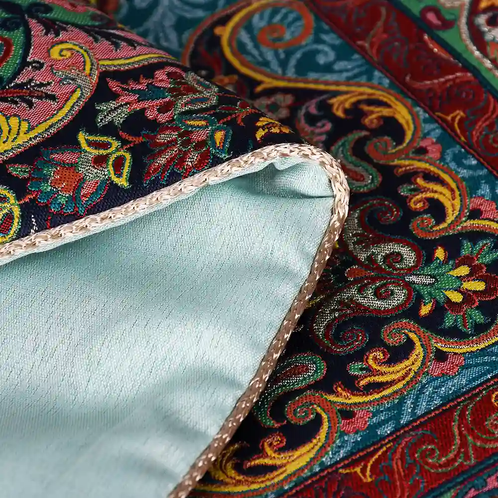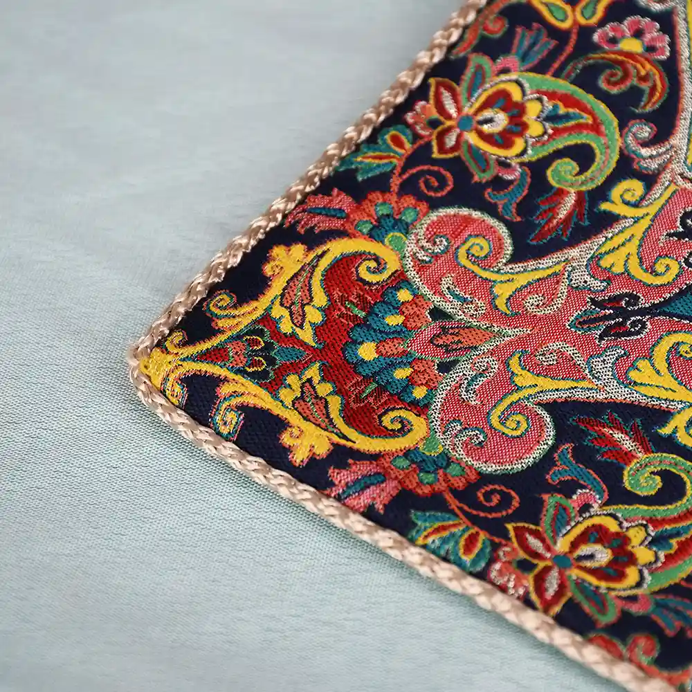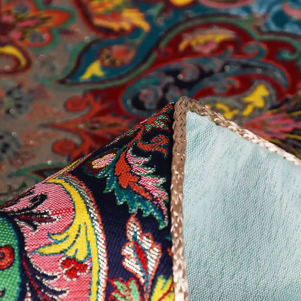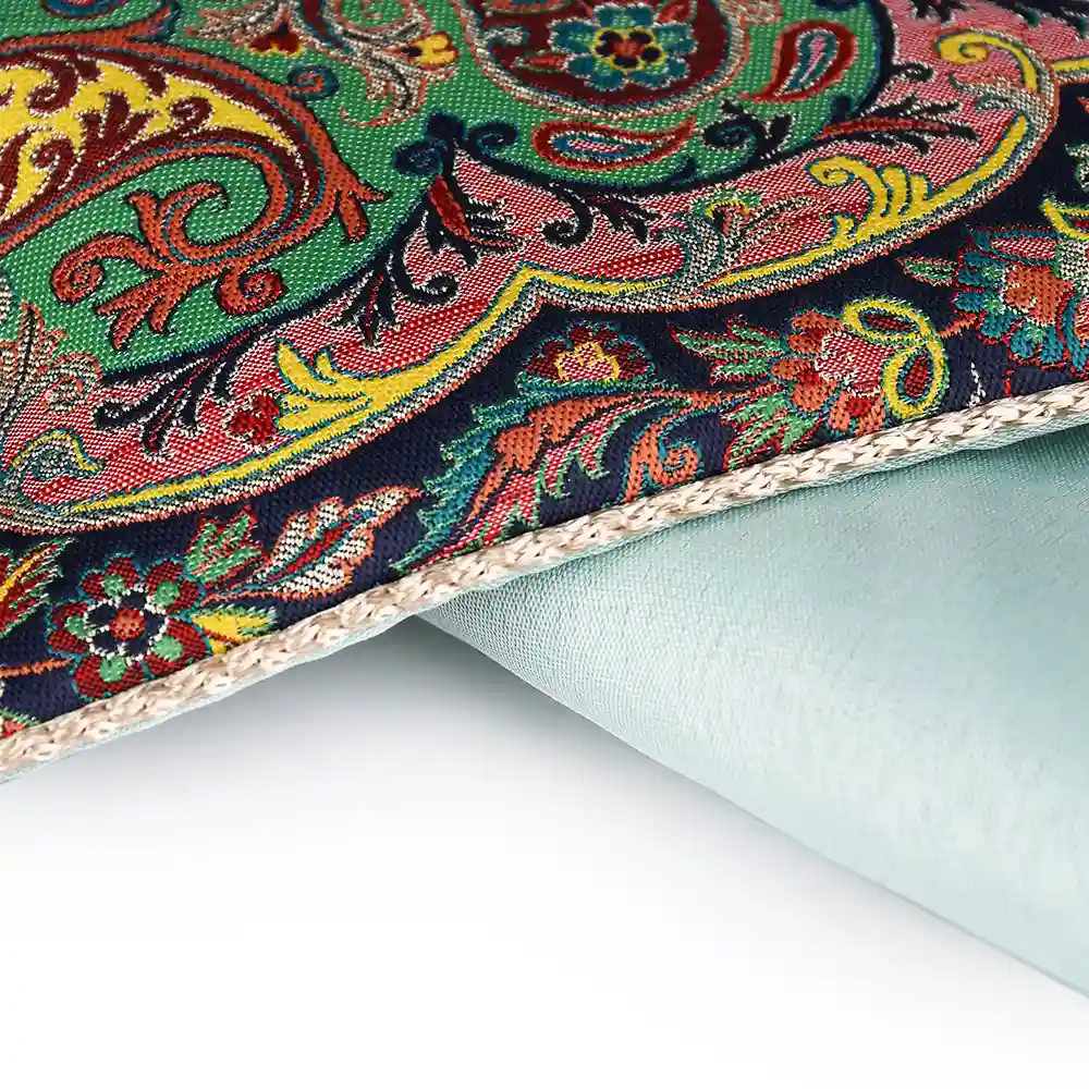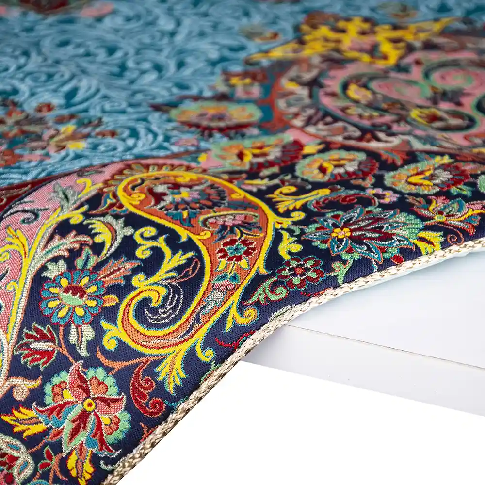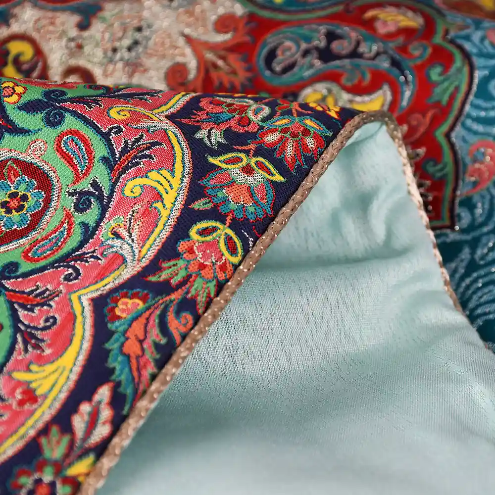 ترمه هفت رنگ همادیس مدل زرین کد TRZ01 یکی از زیباترین و اصیلترین نمونههای هنر نساجی ایرانی است که جلوهای باشکوه از فرهنگ و اصالت را به نمایش میگذارد. این ترمه با ابعاد 90*90 سانتیمتر، مناسب برای تزئین میزهای پذیرایی، جلو مبلی، یا حتی استفاده به عنوان قاب دیواری است. زمینه آبی درخشان آن در ترکیب با نقشهای پیچیده و رنگارنگ گلوبوته، بتهجقه و نقوش اسلیمی، حس گرما و شکوه را به فضا میبخشد.